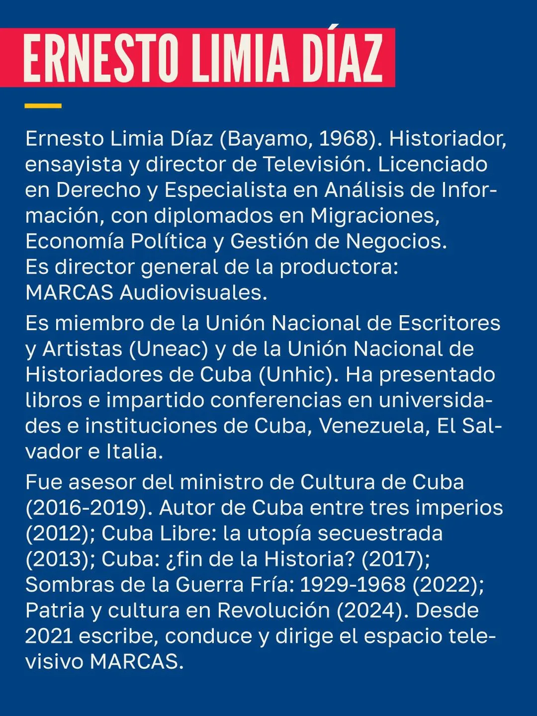 Charla de Ernesto Limia Díaz. Historiador, ensayista y director de TV.